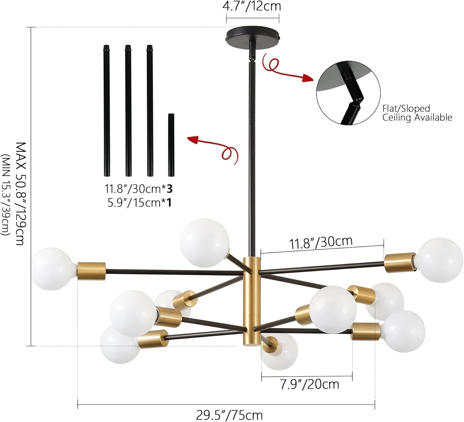 - Adjustable Height - The mid century chandelier light fixture has 4 extension rods, total 50.8"H adjustable length (including 3 × 11.8" and 1× 5.9" rods). You can adjust the hanging height to reach your needs.